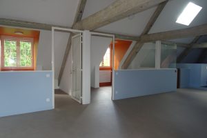 Aménagement d’une partie des Combles utilisés jusqu’en 2024 comme grenier en Salle de réunion, bureaux, espace détente et espace ouvert connecté Volonté de conserver la