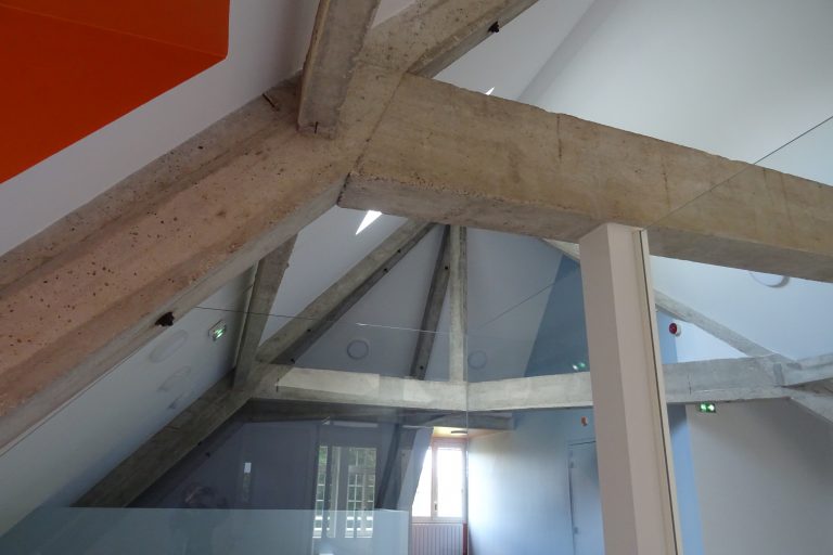 Volonté de conserver la visibilité sur l’ensemble de la charpente en BA avec un soin particulier apporté :